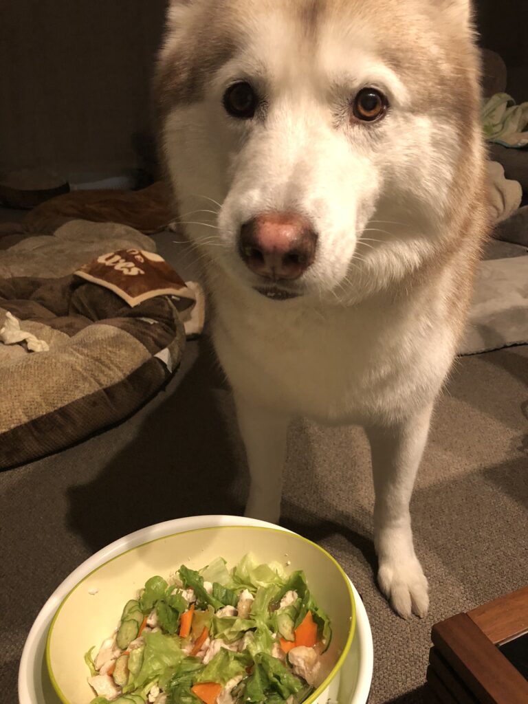 この日のハスキー犬の夕飯は野菜たっぷりヘルシーご飯となりました。